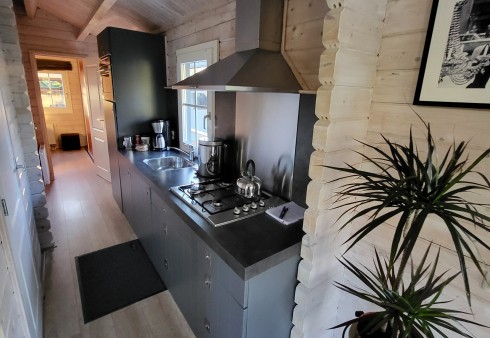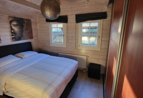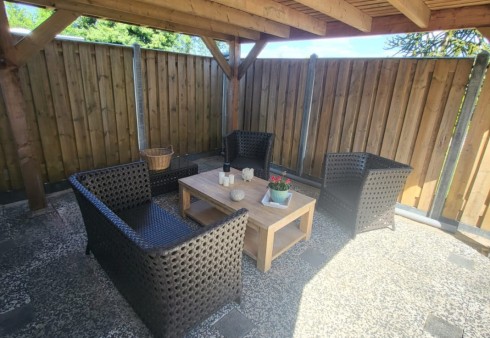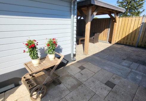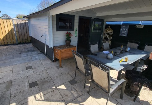 Grote berging 16 m2 met overkapping met wasmachine aansluiting.